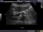 This middle aged lady had h/o dyspepsia for which sonography of the pancreas was done. Ultrasound images show markedly dilated main pancreatic duct (5 mm.) with a calculus (stone) seen as an echogenic nidus in the terminal part of the main pancreatic duct, within the head of pancreas. Pancreatic duct calculi are seen within the main pancreatic duct whilst echogenic foci in the pancreatic gland itself are called calcifications. Both pancreatic calcification and calculi are usually the result of chronic pancreatitis and are more common in alcoholics. Ultrasound images of pancreatic duct calculus are courtesy of Dr. Prasenjeet Singh, MD, India.