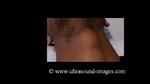 This sonographic image shows a post-surgical absence of the right half of the thyroid gland. Hemithyrodiectomy is usually done in cases of suspected thyroid malignancy. Here the normal left half of the thyroid is seen in transverse section. Ultrasound image taken with a Toshiba Powervision color doppler/ ultrasound machine, courtesy of Dr. Ravi Kadasne, MD, UAE.